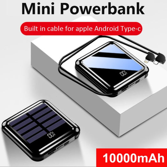 Ultra Slim Solar Power Bank With Built In Cable For Apple Android Type-C
