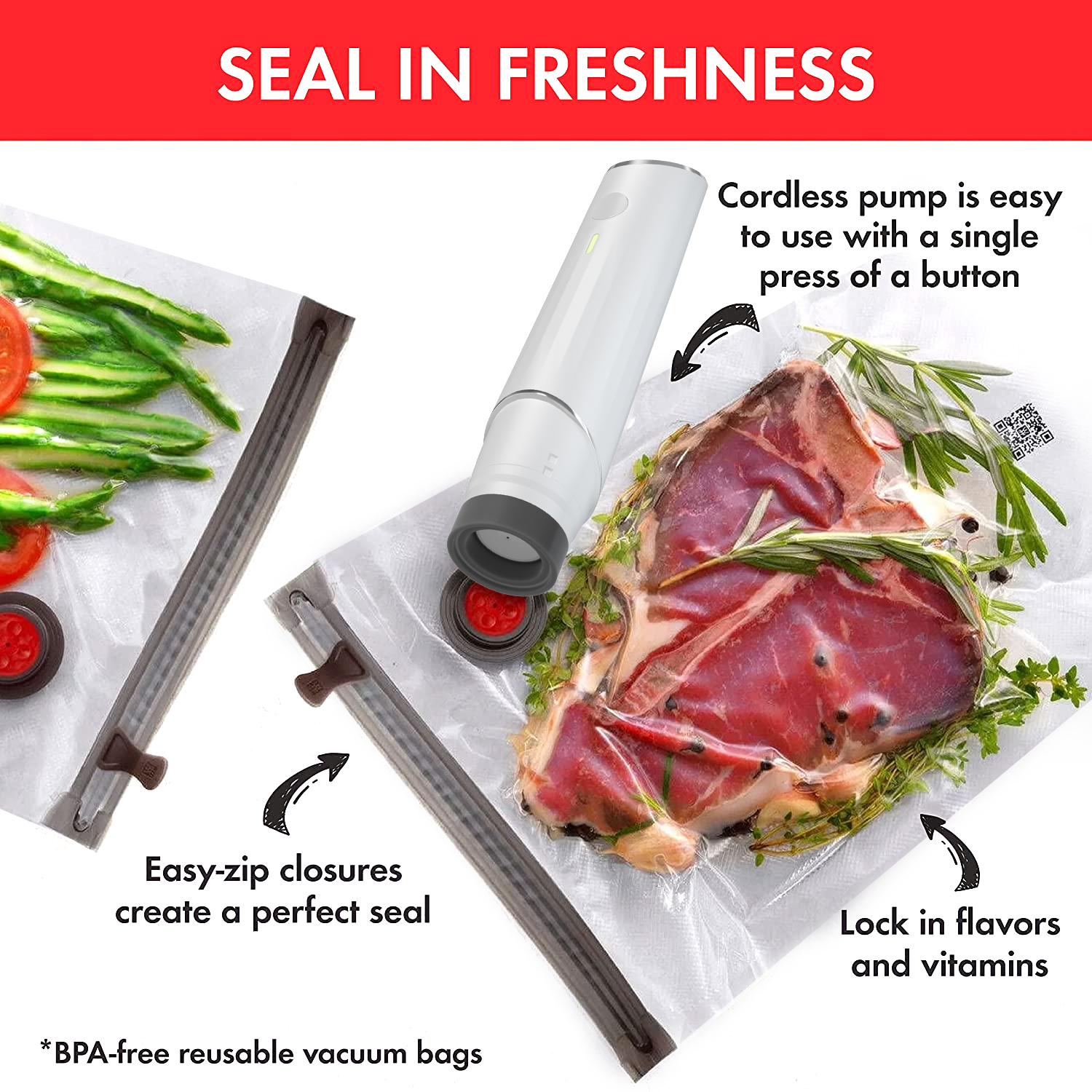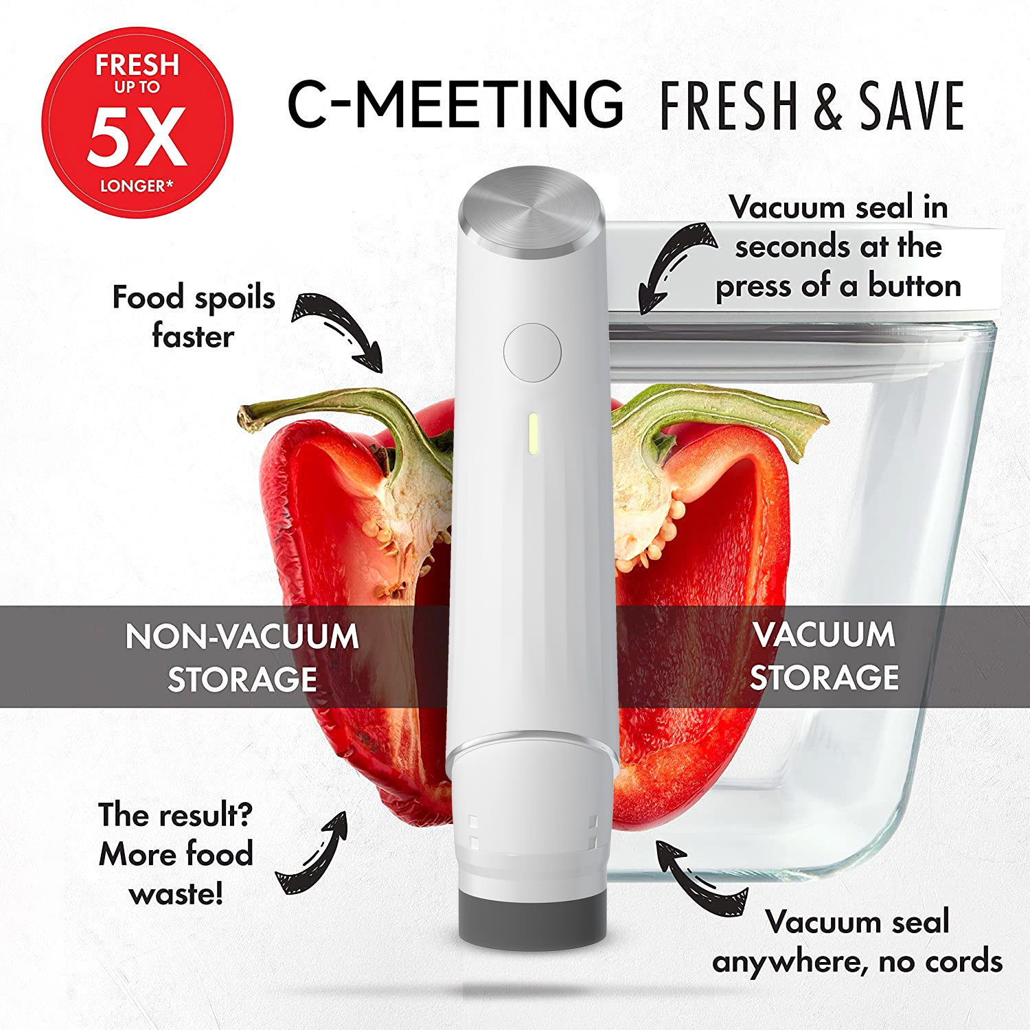 💥Keep Food Fresh]Vacuum sealer makes your fruits, vegetables, meats, seafoods, cheese, grains keep fresh up to five times longer, prevents freezer burn to preserve food's flavors and nutrients to the maximum.