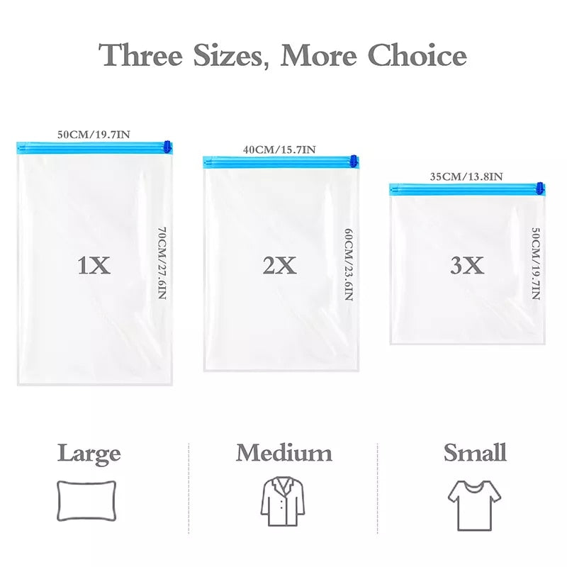 💥 Simple Operation: No vacuum or pump needed , the operation is simple, it can increases up to 75% of the storage space for the clothes in the suitcase or backpack.